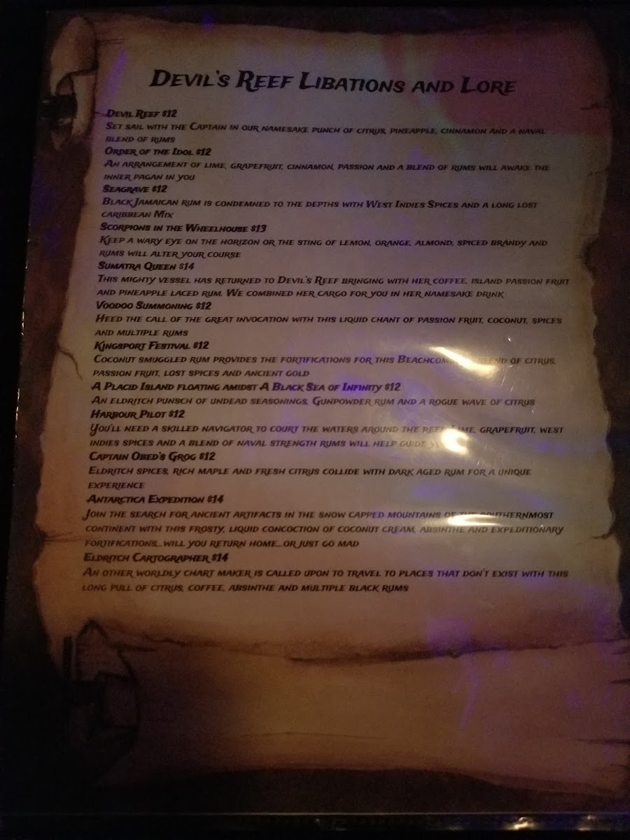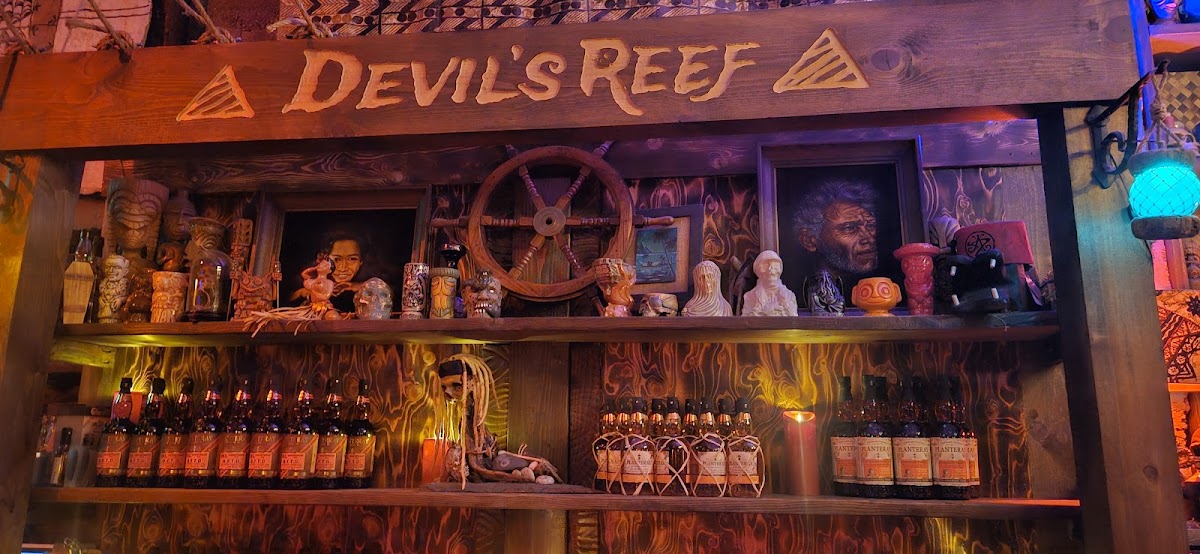 The moment you step inside, you're greeted by a dark, enchanting atmosphere, laden with charming tiki decorations that create an inviting ambiance for anyone looking to unwind. With its dim lighting and nautical-themed interiors, Devil's Reef is perfect for intimate gatherings, celebrations, or simply a night out with friends. The lack of flashy signage only adds to its allure, creating a sense of discovery as you enter this nautical-themed haven.