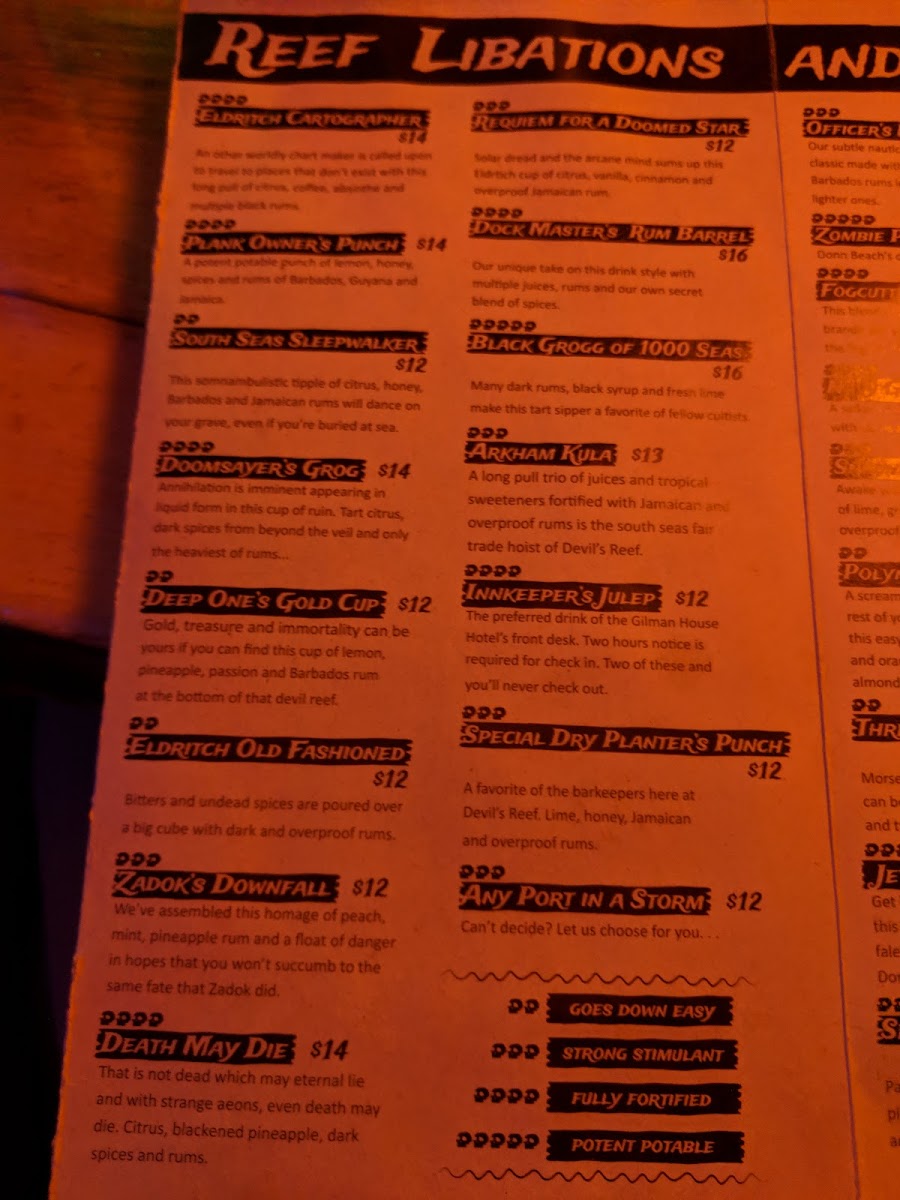 Welcome to Devil's Reef, a hidden gem located at 706 Court C in the heart of Tacoma, Washington. This cozy tiki bar is more than just a place for drinks; it's an immersive experience that transports you to a tropical paradise with every visit. Whether you're a local or a traveler, this spot promises a night filled with creativity, flavor, and a touch of adventure.